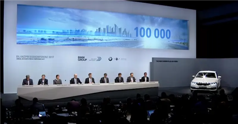 3月21日下午5点,在德国慕尼黑举办的宝马2017年公司年会新闻发布会上,全新一届宝马集团董事会成员集体亮相,集团董事长科鲁格先生和负责财务的董事彼得博士公布了2016财年集团财务数据,并公布了如何在2017年继续落实“全新第一战略”,以及今年发展重点及产品规划。