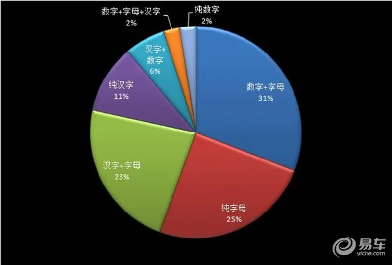 可以看出,车型纯汉字的命名是最多的,占比38%。这很容易理解,许多合资车型、进口车型在进入中国市场时为了接地气,也经常给自己的取个中文名字。