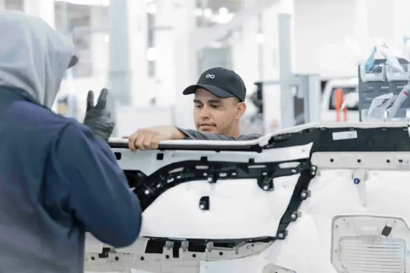 从FF官方发布的加州Hanford工厂照片中可以看到,整车装配过程几乎全部为人工操作,甚至有的工人没戴手套。网友调侃这是“纯手搓”、“标准表演式生产”。