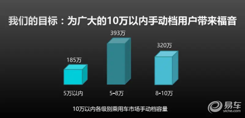 在国内,十万元以内的乘用车车型主要为手动档车型,占比高达80%。10万元以内乘用车市场手动档市场容量能够达到898万人。
