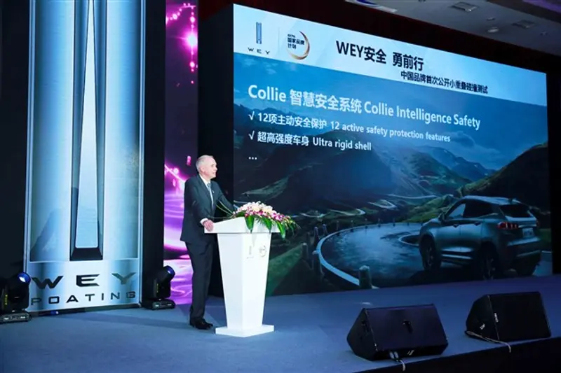 中国汽车技术研究中心安全领域资深专家、研究员级高级工程师刘玉光在发布碰撞结果后提到:“引入美规小重叠碰撞测试并邀请大家共同来此见证,目的是为了提起汽车厂家、行业机构和消费者对更高汽车安全标准的重视,推动中国汽车安全技术的进步。”同时,他还提到“近年中国品牌的汽车在安全性方面已经有了很大进步,WEY品牌主动向全球最严苛的安全测试标准发起挑战,并获得最优等级评价,说明中国品牌的汽车安全性已经达到世界一流水平,展示了中国品牌向上的力量。”