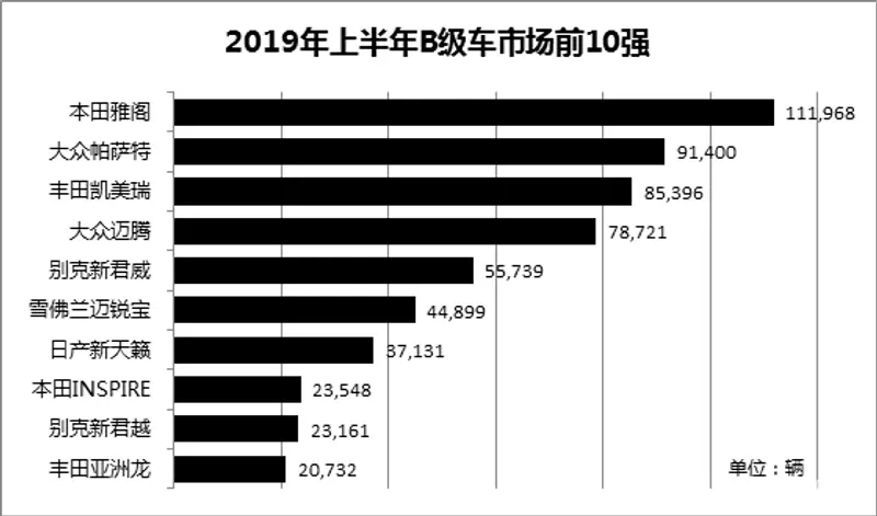 纵观今年上半年的B级车市场,在德、日系的镇守下,从未有自主选手能冲入这一阵线的前十名。吉利博瑞勉强进入15强,但上半年销量也出现下滑,月均只2000辆左右。