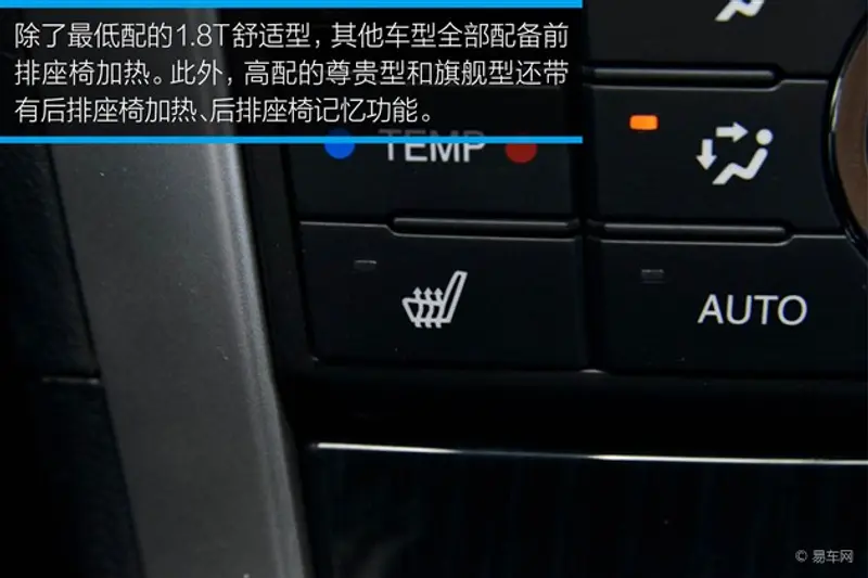从内部配置来看,与外部配置情况差不多,最低配的1.8T舒适型没有任何提升舒适性或实用性的配置,而豪华型则具备比较多的配置,如真皮座椅、电动调节、座椅加热等配置,既有面子,又人性化。至于高配的尊贵型和旗舰型,则配备了后排加热和座椅记忆,实用性不是特别大。论性价比,还是豪华型比较合适。