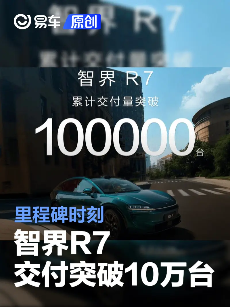 易车讯 11月10日,智界官方宣布旗下R7累计交付已突破10万台,成为25万级SUV市场中增速亮眼的车型。据悉,新款智界R7售价区间24.98-30.98万元。