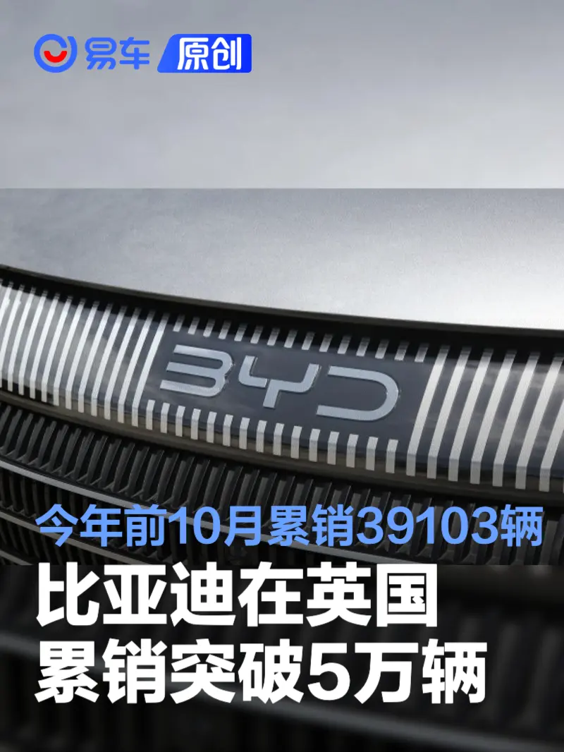 易车讯 日前我们从相关渠道获悉,比亚迪在英国市场的累计销量突破了50000辆,其中10月单月销售近3500辆,今年前10月累计销量39103辆。