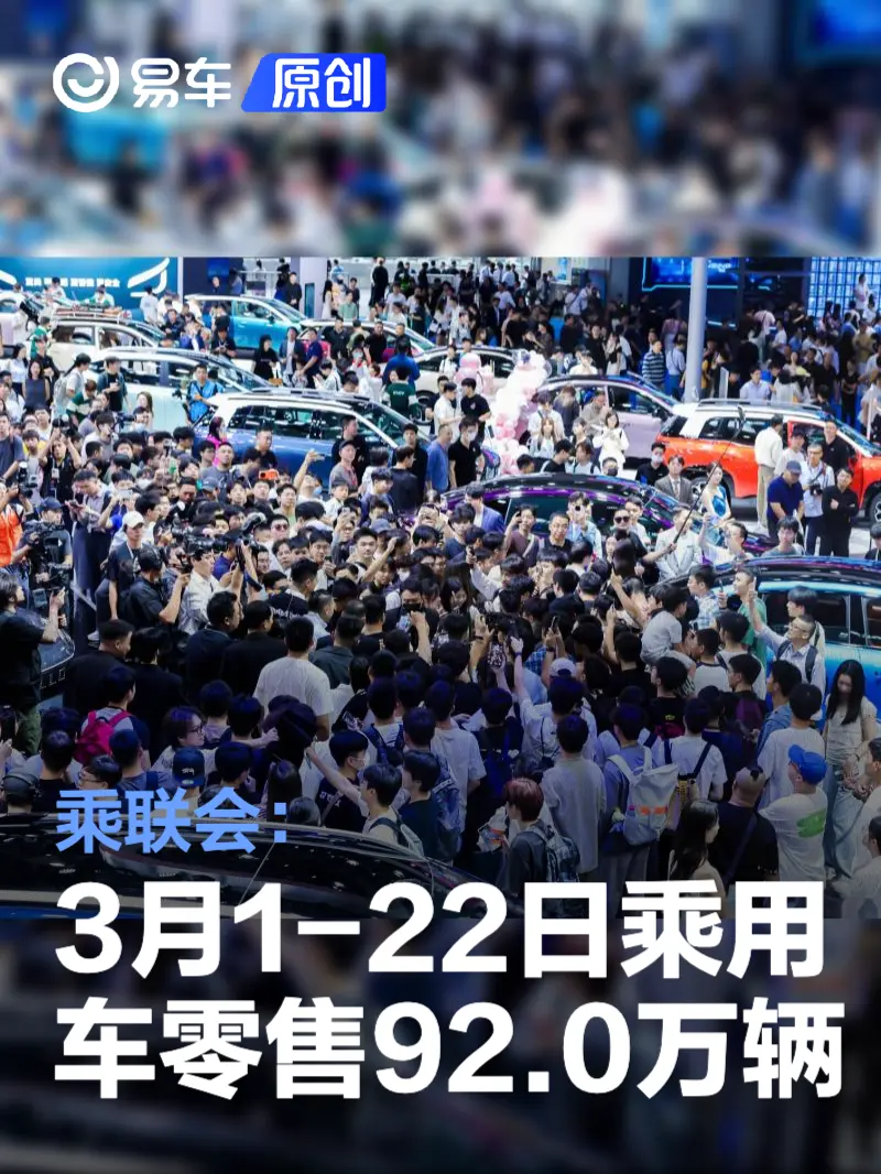 3月1-22日,全国乘用车市场零售92.0万辆,同比去年3月同期下降16%,较上月同期增长19%;今年以来累计零售349.8万辆,同比下降18%。