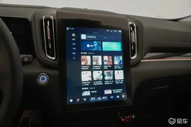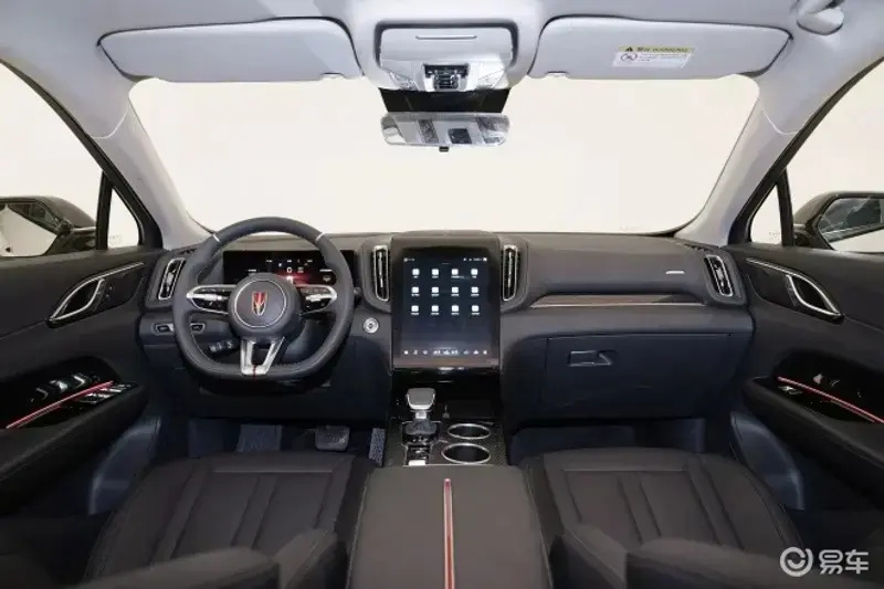 内饰部分,红旗HS3依旧采用红旗最新家族设计语言,真皮打孔平底方向盘和H6是同款,运动味很浓,中央是竖向大屏幕的信息显示方案,下方是手机无线充电版,整体造型简洁,科技感也比较到位。副驾驶前方的触摸面板,当乘客触摸该区域时,面板信息将显示出来,支持多媒体控制、音量调节、空调控制和座椅通风/加热。