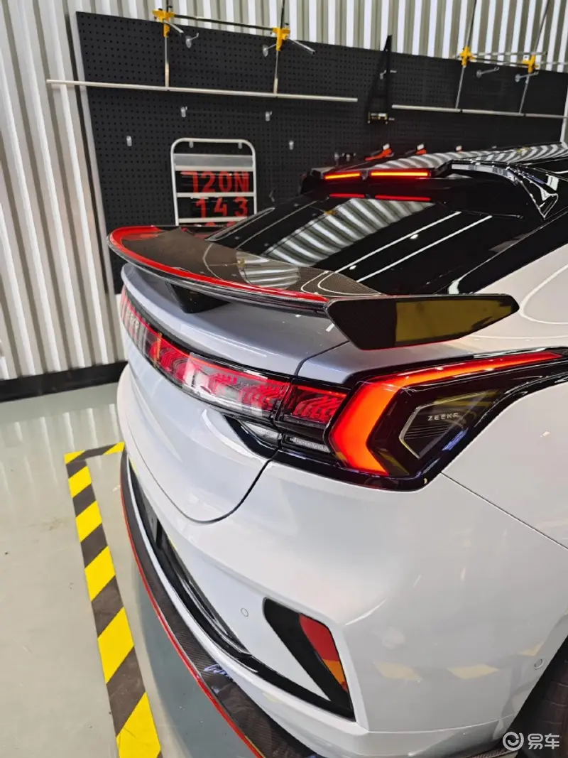 尾部除了增加固定式尾翼外,后包围下方配有扩散器,车身两侧依然拥有风道设计。至于车型动力性能,目前官方尚未公布,网传极氪001 FR将采用四电机布局。(图片来源:微博Cars01)