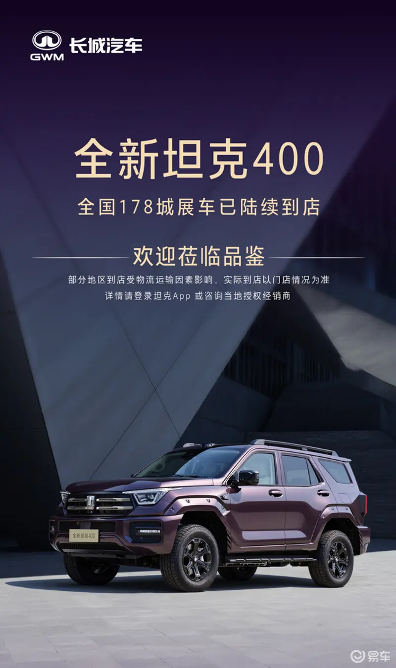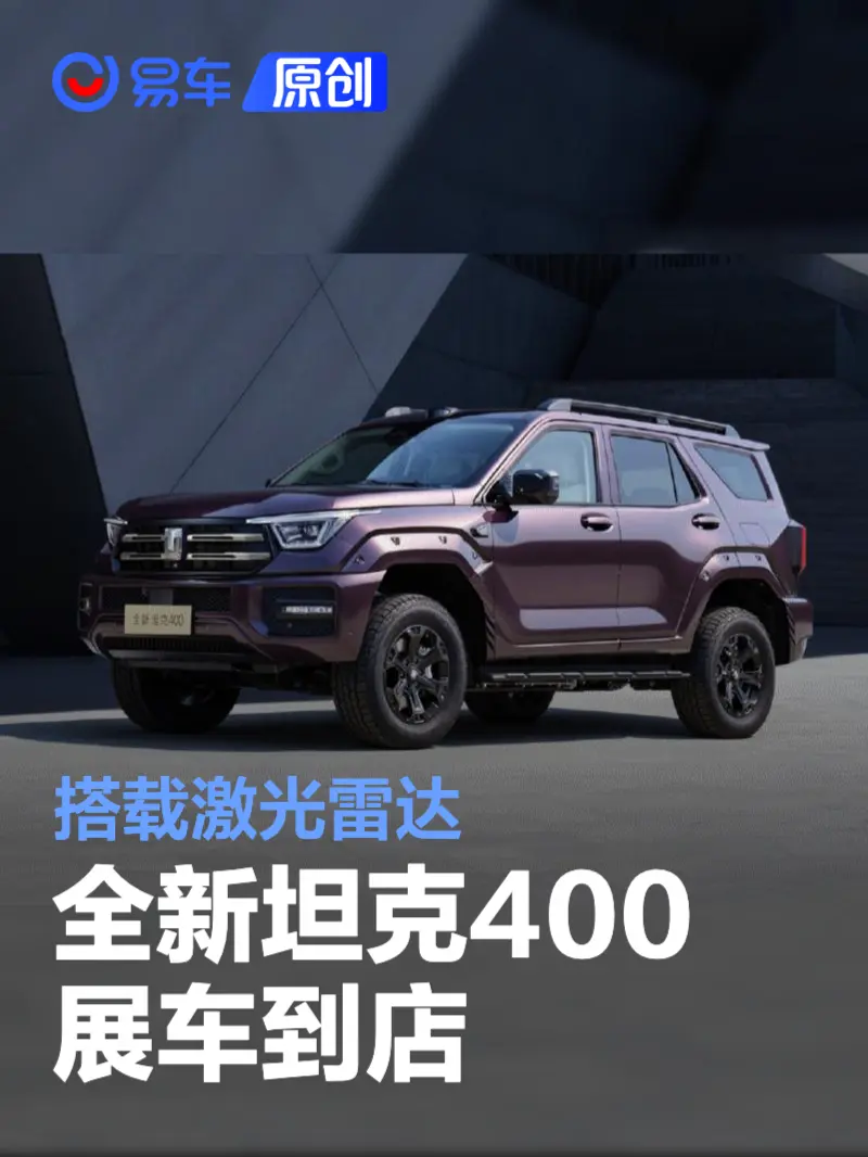 易车讯 今日,据坦克SUV官方消息,全新坦克400全国178城展车已陆续到店。新车主要对外观细节进行了调整,新增全新“敦煌紫”车色,此外最明显的变化就是增加了激光雷达,搭载第三代Coffee Pilot Ultra辅助驾驶系统。动力方面,新车还增加了Hi4-Z车型。