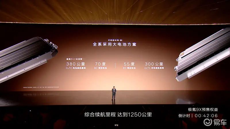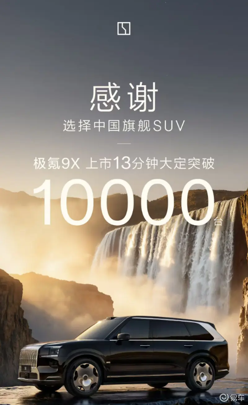 易车讯 9月29日,极氪9X正式上市,推出4款车型,官方指导价区间46.59-59.99万元,超级置换权益后限时售45.59-58.99万元。官方数据显示,新车上市仅13分钟大定就突破1万台。极氪表示,9X的甄选车型将于明日开启交付,Hyper版则计划在11月下旬开启交付。