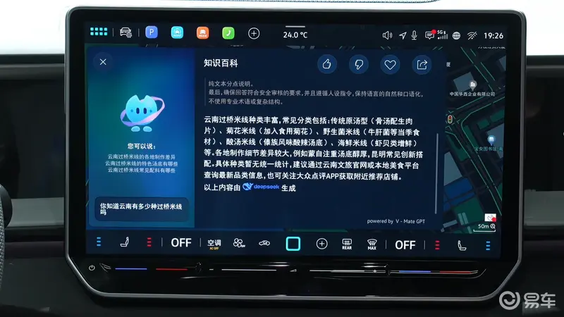 支持智能车书、 百科闲聊、AI生成(图片、文案)、多媒体内容推荐及智能场景模式生成等丰富功能,覆盖多种高频用车场景;同时,结合深度思考与地理感知能力,实现沿途感知和AI向导功能,提升出行智能化体验。