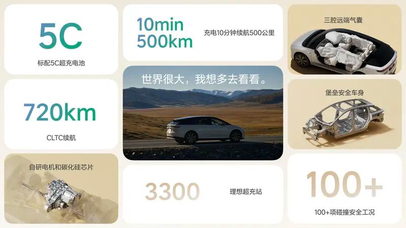 动力方面,理想i6基于800V高压纯电架构打造,配备自研碳化硅电机,其中四驱版前电机功率150千瓦,后电机功率250千瓦;后驱单电机最大功率为250千瓦;它将全系配备87.3kWh新一代5C磷酸铁锂电池,拥有660公里、710公里、720公里三种续航,支持5C充电,10分钟续航增加500公里。