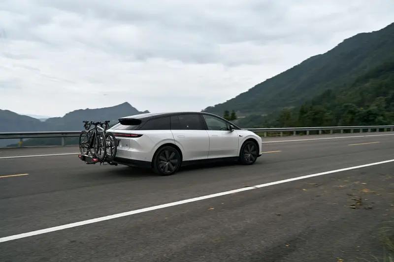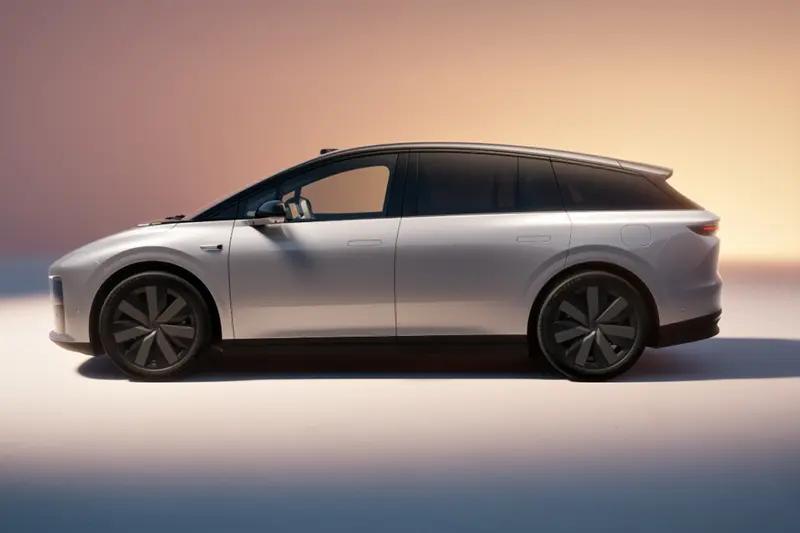 车身侧面,新车采用低风阻的一体式鲨鱼形态设计,有效提升了续航表现。同时,新车通过“长轴距+短前后悬”的设计,在获得超过3.3米超大车内纵向可用空间的同时,也提升了车辆的操控灵活性。