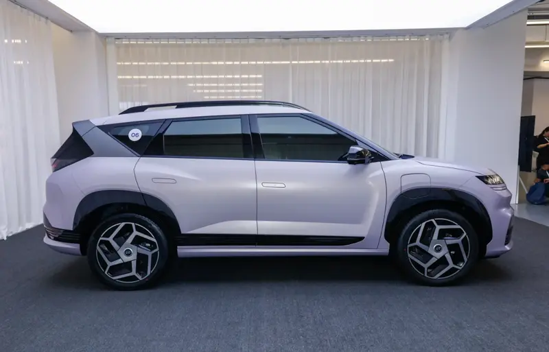 车身侧面看起来十分简洁,其隐藏式门把手也并未缺席,预计带来不错的风阻系数。