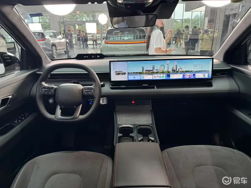 新车内饰采用了极简的设计风格,全系标配27英寸超薄双联屏,新车方向盘拨片支持一键切换4档动能回收,长按切换单踏板模式。