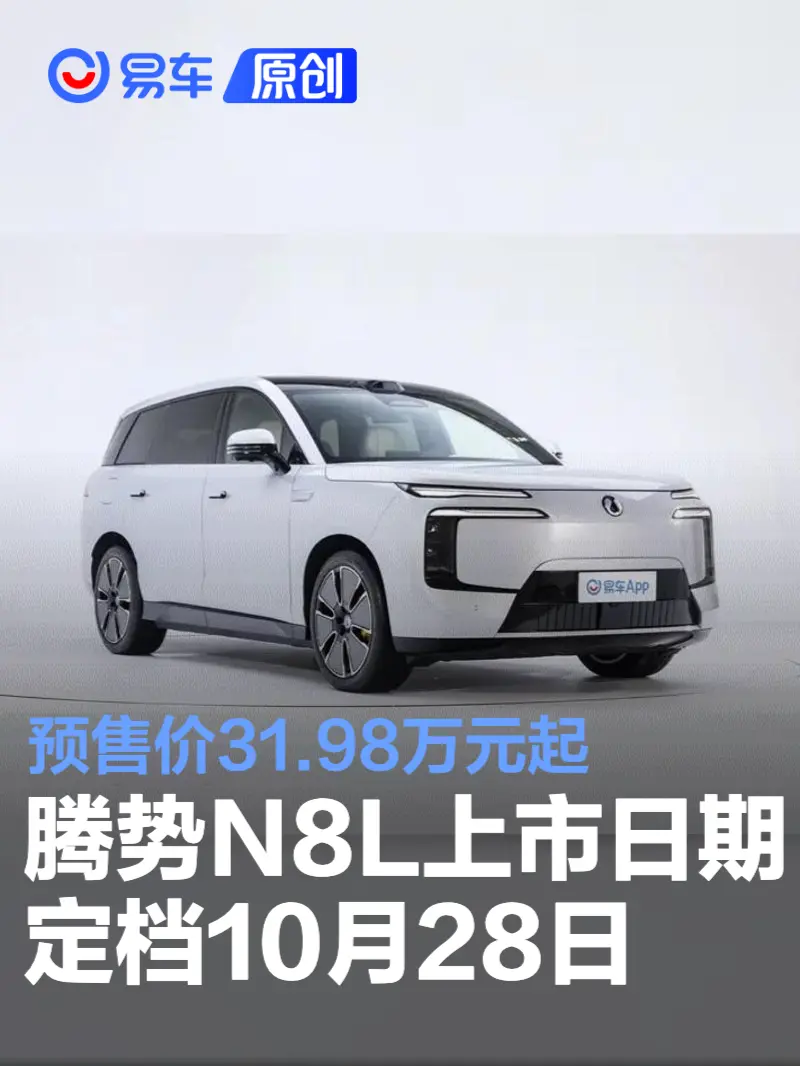 易车讯 10月17日,腾势汽车总经理李慧在社交媒体透露,腾势N8L将于10月28日上市。此前,腾势N8L于9月26日开启预售,包含两款车型,预售价区间31.98-34.98万元。