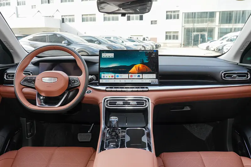 内饰方面,第5代帝豪采用大量镀铬饰条勾勒轮廓,配备超高软包覆盖面积,触感温润高级。科技配置方面,同级首搭水晶挡把、50W风冷无线充电及14.6英寸高清大屏,营造精致温馨驾乘氛围。配色提供旷野棕、云舒灰、星夜黑三种方案,诠释对幸福生活的向往。