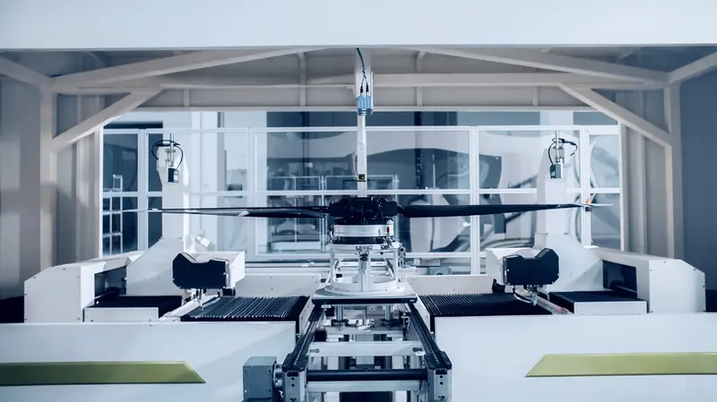 总装车间是飞行器制造的最后阶段,主要负责完成九大系统各部件的集成装配、测试及质量检查,确保最终产品符合设计要求和适航标准。采用全球首创的云端智能标定检测技术,无需外接、无损互联,全自动完成飞行器自驾功能、飞控导航、重量质心的检测标定。