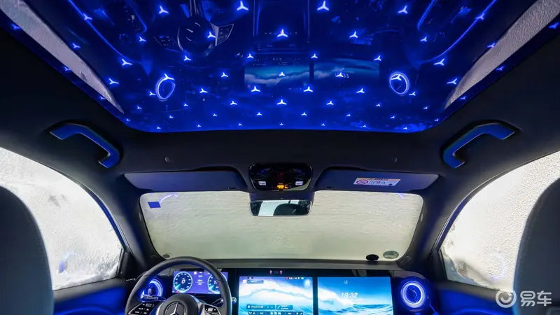 内饰方面,新车内饰沿用CLA的设计,采用全新样式方向盘并配有三联屏,但是官方没有公布屏幕尺寸,预计将搭载10.25英寸全液晶仪表盘以及两块14英寸触控娱乐屏。此外,新车还可选装带 “星空顶”效果的发光车顶。