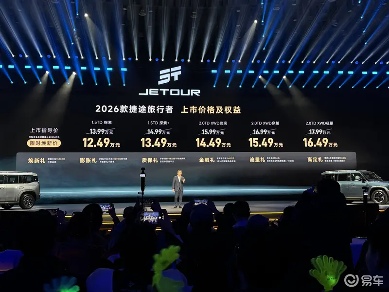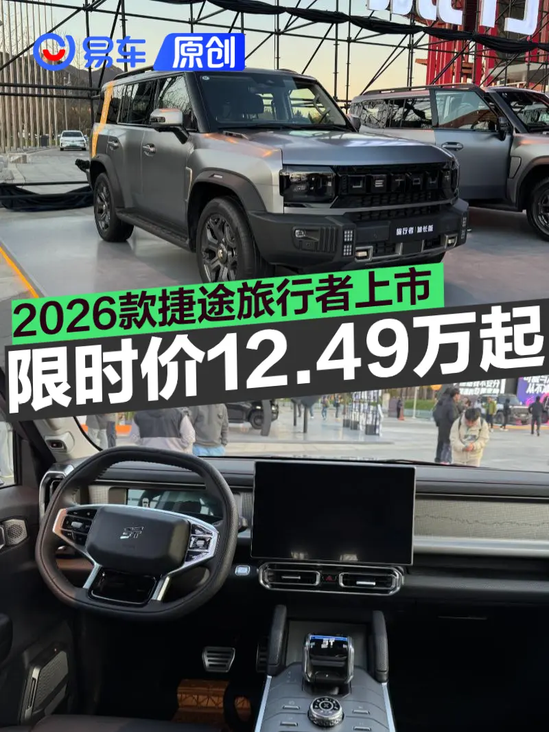 易车讯 10月17日,捷途官方宣布2026款捷途旅行者迎来正式上市,新车共推出5款车型,售价13.99-17.99万元,限时焕新价12.49-16.49万元。新车在在外观和内饰上迎来全新升级。