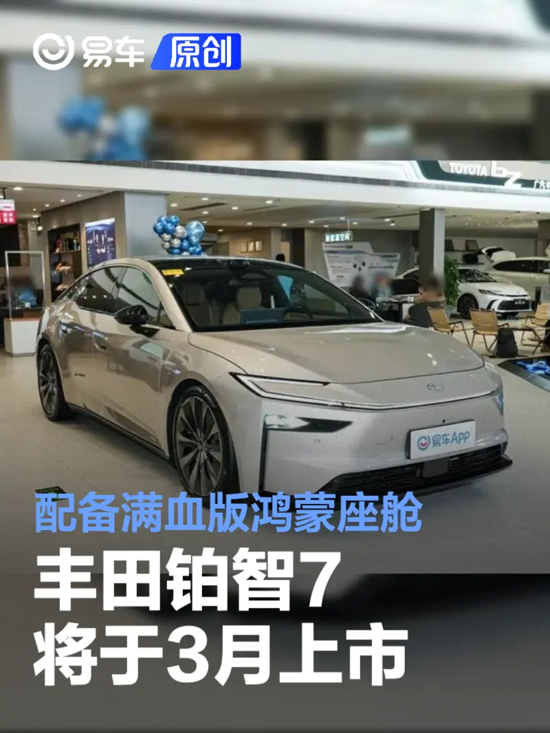 易车讯 我们从官方获悉,丰田铂智7定于3月上市。新车定位中大型纯电动轿车,配备满血版鸿蒙座舱、智能预瞄双腔空悬、Momenta R6智驾辅助及双电机零重力座椅等配置。