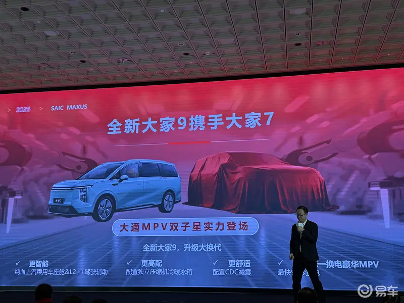 在MPV车型中,全新大家9将迎来升级大换代,新车将搭载纯血上汽乘用车座舱以及L2级驾驶辅助,配备配置独立压缩机冷暖冰箱、CDC减震,并支持换电模式。