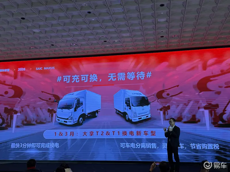 在轻卡领域,大拿T2与大拿T1两款换电新车型分别在1月和3月推出,两款新车可实现最快3分钟换电,销售模式可灵活选择整车销售与车电分离销售,为用户节省购置税成本。