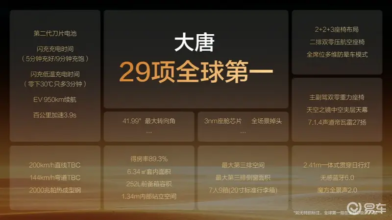 易车讯 3月5日,比亚迪王朝网首款D级旗舰SUV大唐正式亮相。大唐搭载比亚迪第二代刀片电池、闪充以及天神之言等诸多黑科技。官方表示,新车将于今年上半年正式上市。
