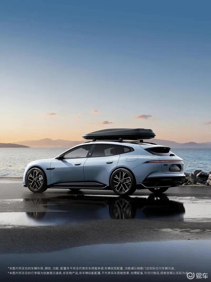 侧面来看,因采用了旅行车的车身结构,阿维塔06T拥有一张漂亮的侧脸。新车采用半隐藏式门把手设计,并搭载造型动感五辐轮圈。值得一提的是,新车还配备了车顶行李架,并安装了车顶“小书包”,充分满足日常通勤、家庭出行的各种场景所需。车身尺寸方面,新车长宽高为4940/1960/1475(1455)mm,轴距为2940mm。