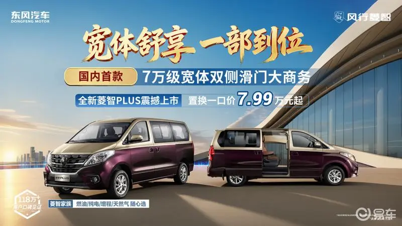 易车讯 3月18日,东风风行菱智PLUS迎来正式上市,新车共推出3款车型,基本型7座上市指导价8.99万元、置换一口价7.99万元;豪华型7座上市指导价9.99万元、置换一口价8.99万元;豪华型9座上市指导价10.19万元、置换一口价9.19万元。新车将提供燃油、纯电、增程及天然气四种动力选择。