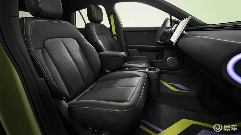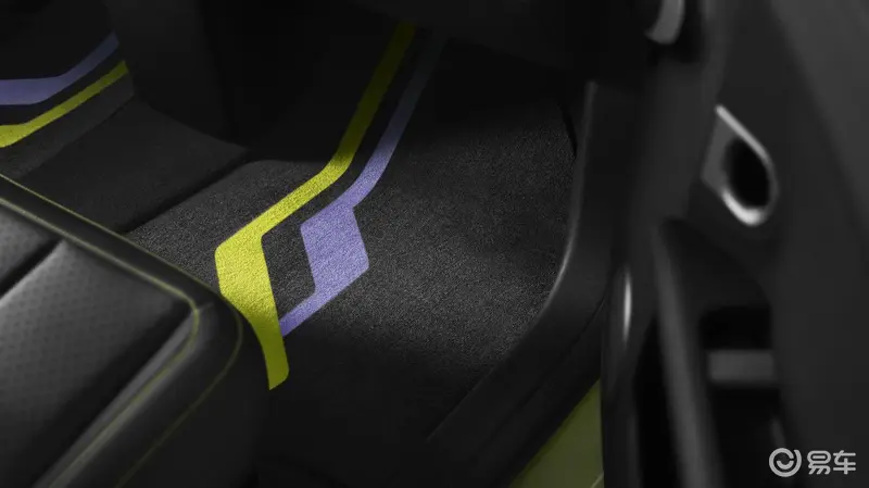 千禧之夜主题内饰延续对y2k美学的视觉转译,以发光版沉静黑内饰与黑色织物顶棚为基底,通过细节处的亮色点缀强化潮流感。前、后排座椅采用千禧萤光安全带及座椅缝线,与千禧频率定制脚垫形成强烈色彩呼应,唤醒千禧霓虹的视觉想象。头枕logo以高温凸印技术呈现起伏纹理,细节之处尽显高级与专属感,为座舱营造沉浸式千禧潮流空间。