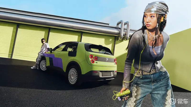 千禧漫波特别版以y2k复古未来时尚美学为基调,将千禧年特有的萤光撞色以及先锋科技感凝练于车身。新生绿为基底,带来蓬勃向上的生命力,霓虹紫作为拉花主视觉,贯穿前盖连接车身,唤醒对千禧霓虹的想象。车门处的胶片黑拉花设计,是配色的点睛之笔,为明亮色调注入了一抹浓郁的复古颗粒质感。流畅延展的曲面线条融入速度感的斜面切割,如同一道可被感知的视觉信号,精准接入千禧年的美学频段。