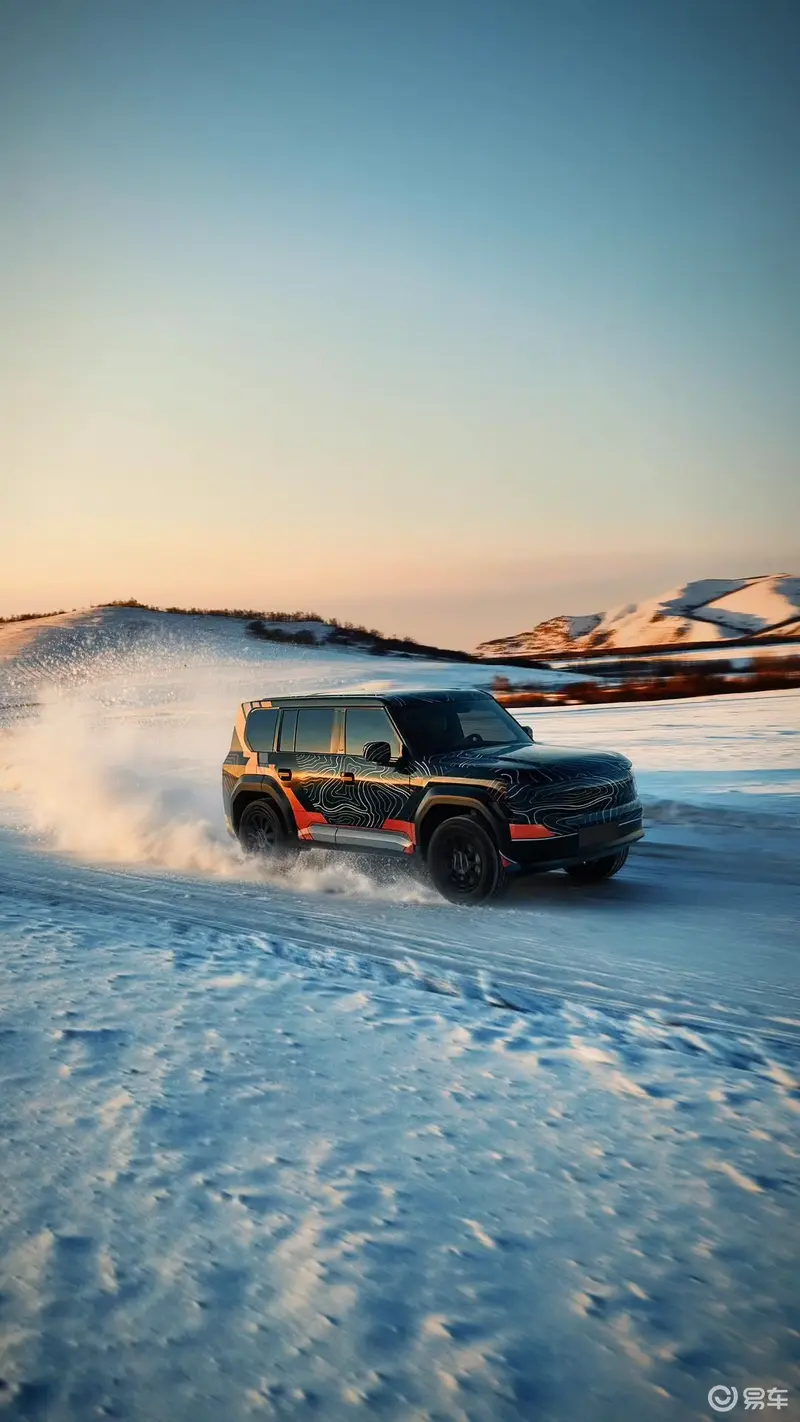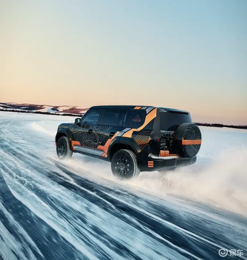 车身侧面的宽体外抛轮眉、AT越野轮胎、隐藏式机械门把手,既强化了越野属性,又优化了风阻表现;车顶前部疑似搭载激光雷达,暗示其将兼顾智能驾驶功能。
