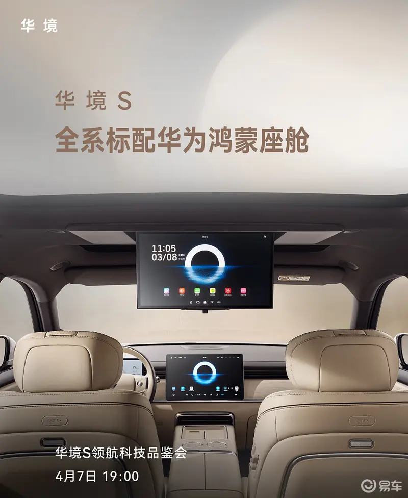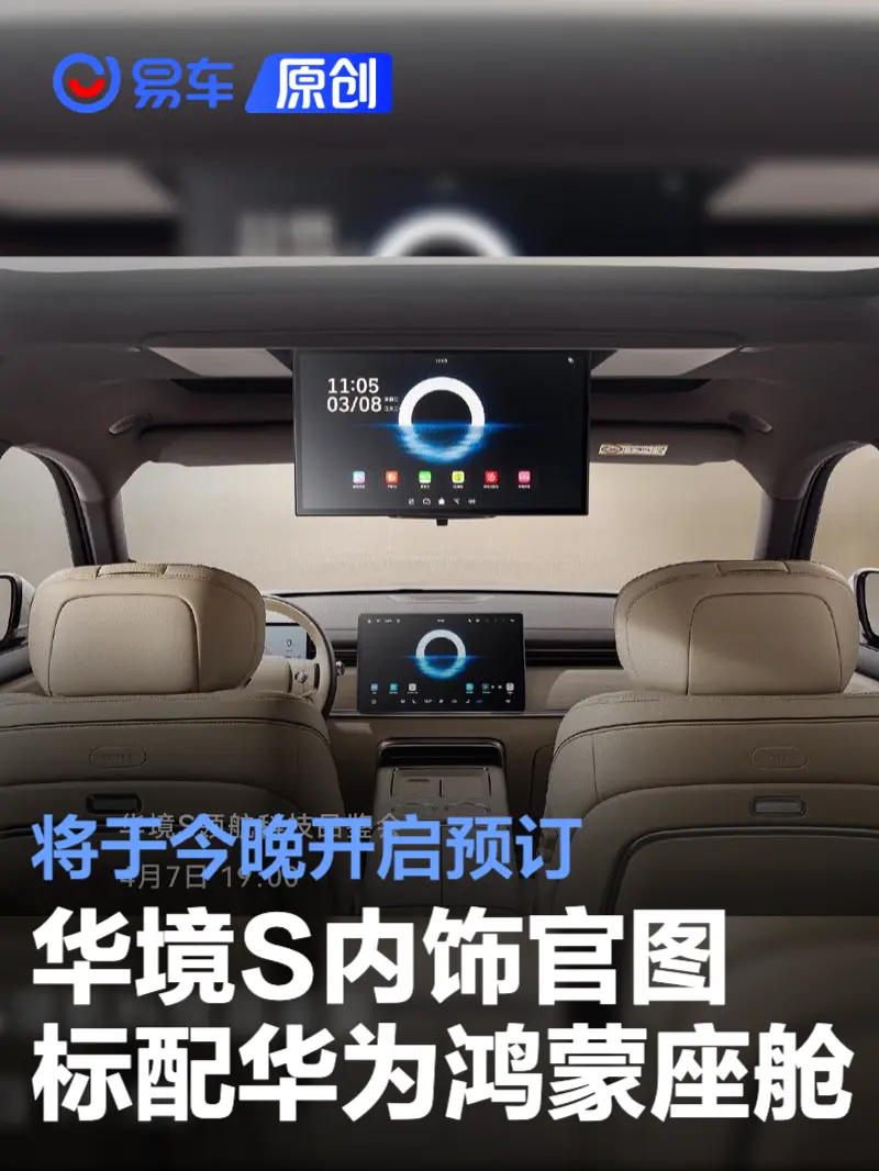 易车讯 日前,华境汽车正式发布了华境S车型内饰官图,该车全系标配华为鸿蒙座舱、智驾ADS 4以及乾崑车云HUAWEI IVCS。官方表示,华境S将于今晚举办的科技品鉴会上正式开启预订。