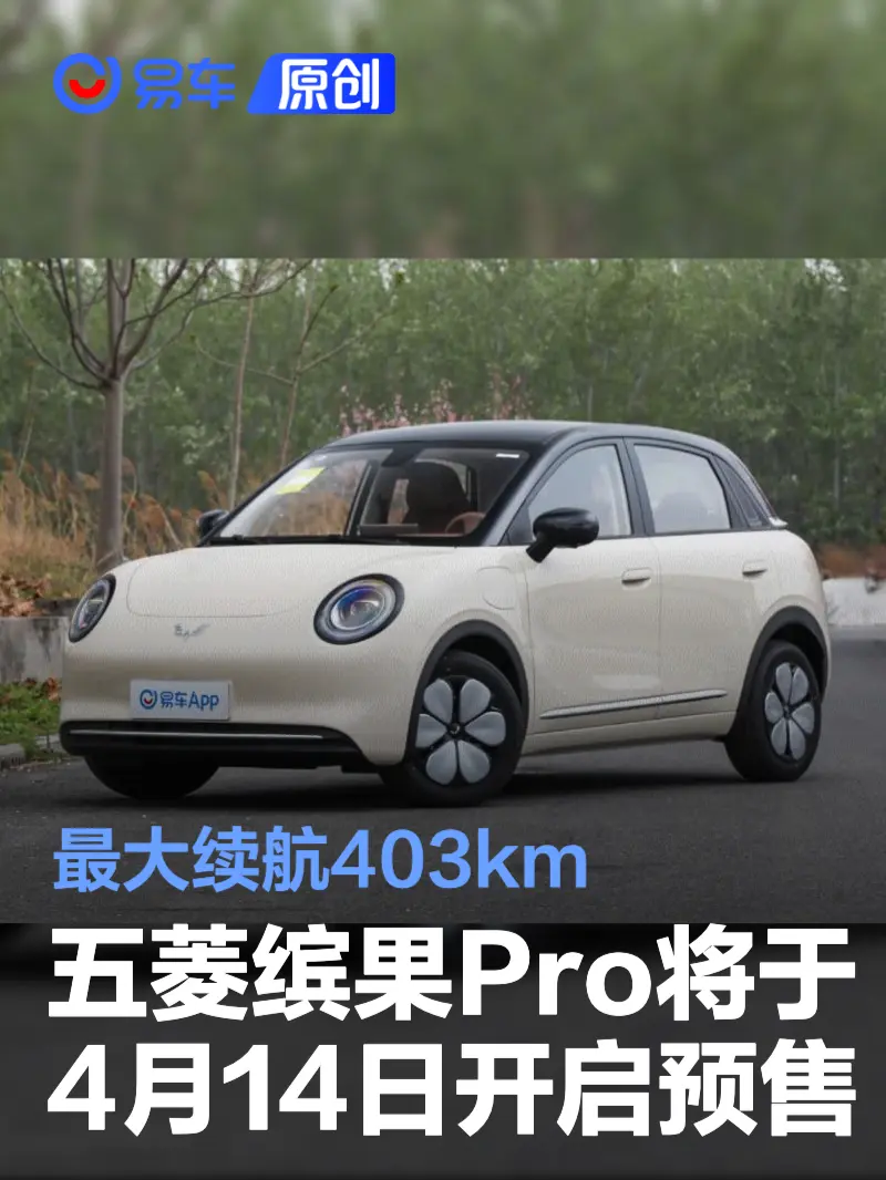 易车讯 我们从五菱官方获悉,五菱缤果Pro将于4月14日开启预售 。该车采用了最新的设计语言,内饰搭载灵语智能系统,智能化显著提升。动力方面,新车采用纯电驱动,最大续航403km。