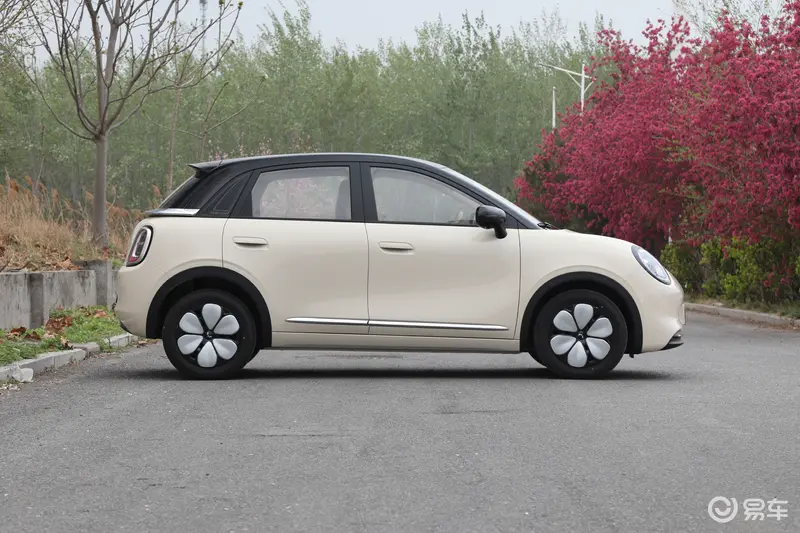 新车侧面线条比较简约,车顶与车身不同色的手法营造出悬浮车顶的效果。新车采用半隐藏式门把手设计,并打造造型时尚的花瓣形轮圈。
