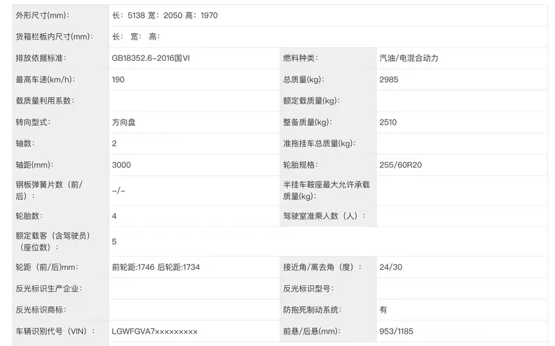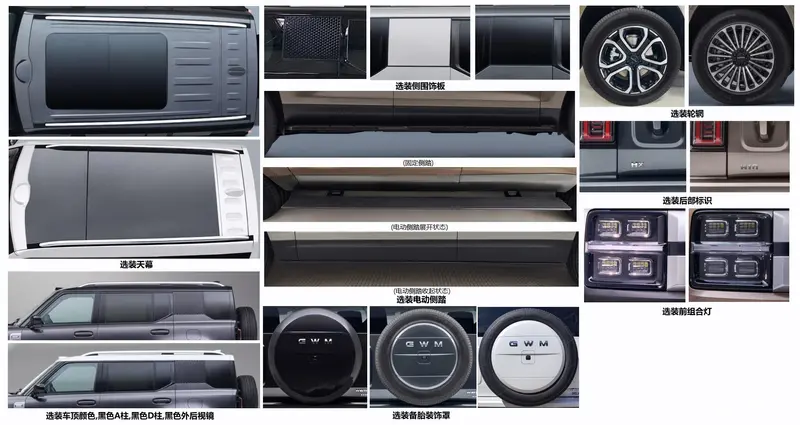 侧面来看,新车保留传统机械式门把手与侧踏板。车身尺寸方面,新车长宽高为5138(5299)/2050/1970mm,轴距为3000mm。尾部方面,新车采用外挂备胎接口与侧开尾门,延续硬派越野经典元素。动力方面,新车提供1.5T插混和2.0T插混两种动力,其中1.5T发动机最大功率123千瓦,2.0T发动机最大功率175千瓦。