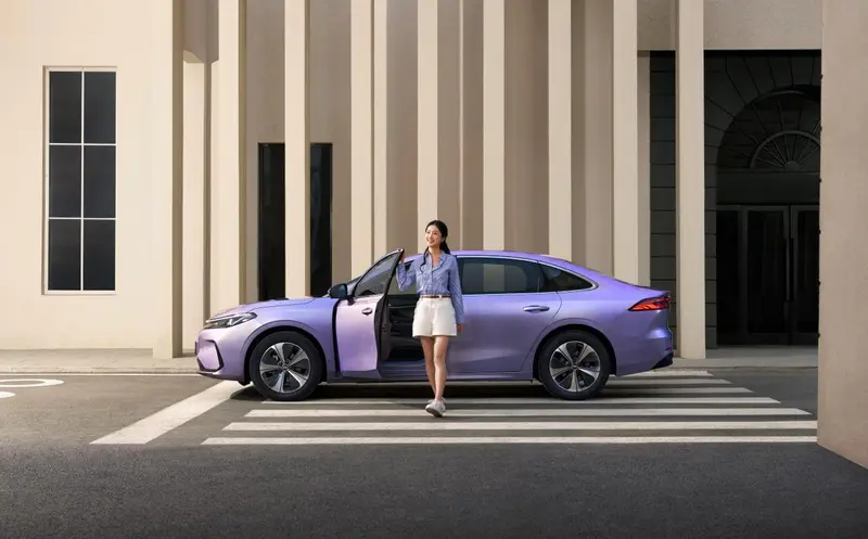 吉利银河A7搭配云锦紫外观车色,其灵感淬炼于东方暮山云霞之色,凝驻了现代光影流转之美。在外观上,新车还延续了“银河涟漪”设计美学理念,将中式传统美学与现代科技豪华创新融合,打造更具质感的造型设计、更精致的细节,带来银河涟漪贯穿前灯、旭日东升贯穿尾灯。