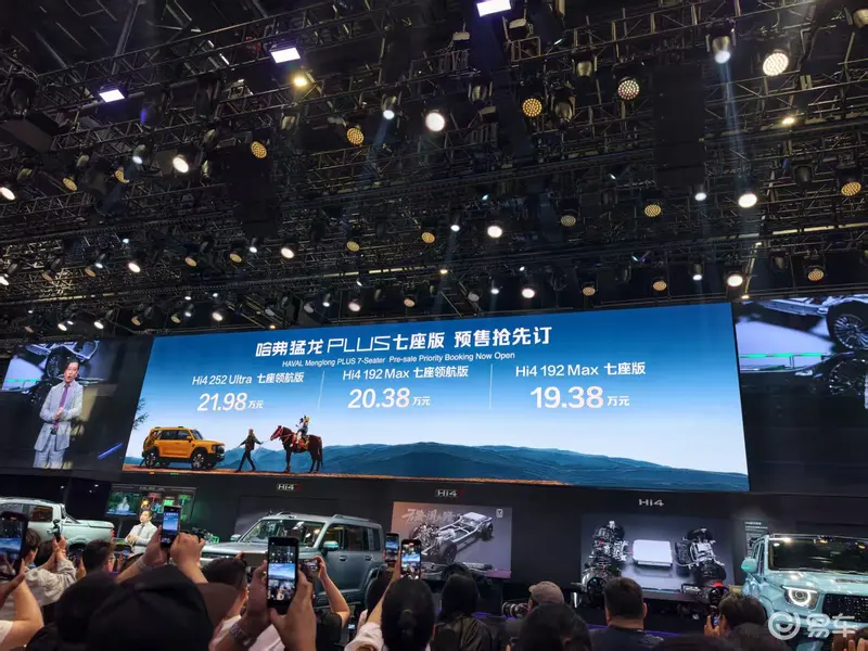 易车讯 在今日开幕的北京车展上,哈弗猛龙PLUS七座版预亮相展台。预售价19.38-21.98万元,提供5座/7座版本可选,采用插混式动力系统。新车不仅在尺寸上实现了全面升级,还将搭载激光雷达。