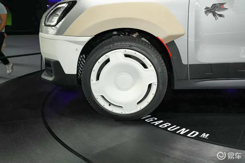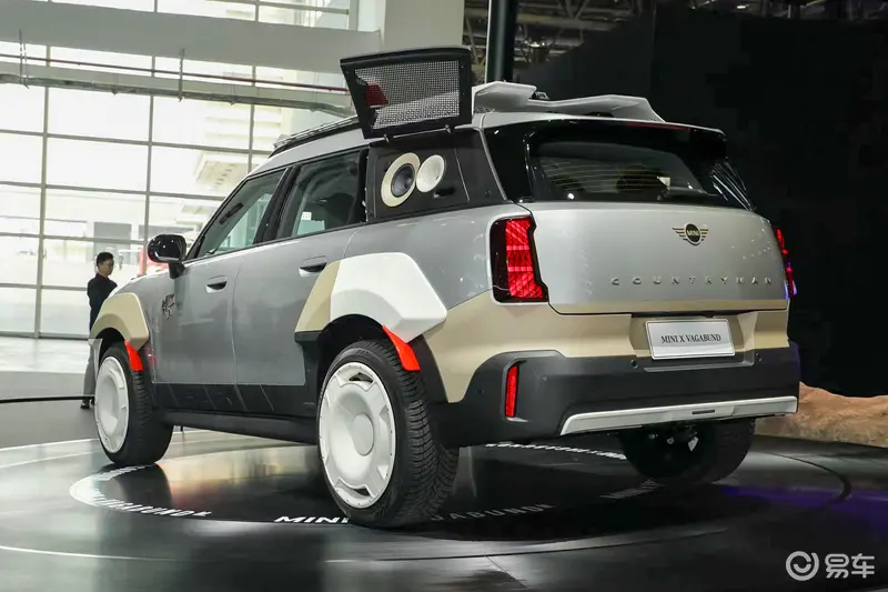 该车专属的宽体轮拱与更高的离地间隙,直观展现出MINI COUNTRYMAN越野基因。侧裙上立体镶嵌的“VAGABUND”标识,标识着它的独特身份。20英寸封闭式3D打印轮毂盖,在强化力量感与肌肉感的同时,巧妙呼应了车尾音箱的设计语言。车顶由激光切割铝板与不锈钢网格共同构成的车顶行李架,在视觉上借鉴了音箱网罩的设计特点。