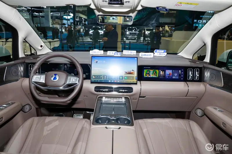 内饰方面,新车采用了经典的T字形布局,第二排座椅配备了航空座椅和小桌板。此外,新能源车流行的二排屏幕也并未缺席,同时新车还在座椅后面还配备了两个液晶显示屏。