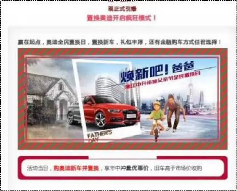 奥迪品牌浙江经销商置换活动专题抄袭本次活动头图创意,足以证明本次活动的影响力和口碑。