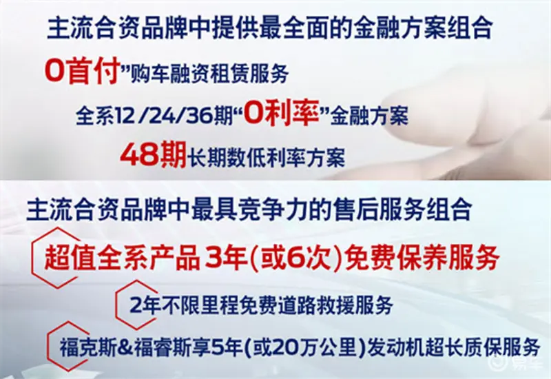 一般来说,服务并不是主流合资品牌的强项所在,但却是能够快速打动消费者的东西。以免费保养政策为例,这是此前仅有雷克萨斯等豪华品牌才有的服务政策。而此次福特将其加入到自己的“全无忧一站式专案”中,无疑让自身在与其他主流合资车企的竞争中,拥有了更多的亮点和优势。