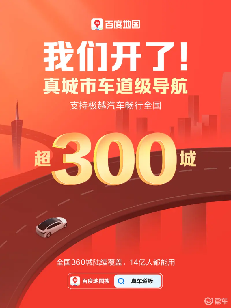 易车讯 百度地图日前宣布,车道级导航功能目前已覆盖全国超300座城市。基于业内首个地图生成大模型加持,3个月内完成全国360城车道级数据制作,即将陆续上线全国。