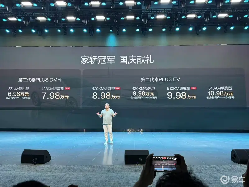 易车讯 9月25日,比亚迪官方宣布第二代秦PLUS进取型迎来正式上市,新车共推出3款车型,售价区间7.98-9.98万元。同时全系车型享国庆献礼价,限时6.98万元起。作为新增车款,新车增加星河米配色外,还将针对配置进行升级。同时,秦PLUS DM-i通过油耗OTA升级,全系NEDC百公里油耗低至2.69L。