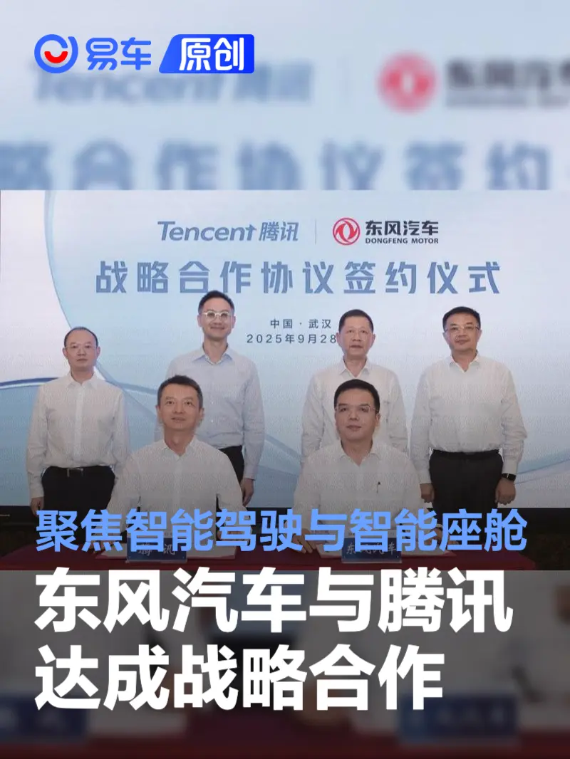 易车讯 9月29日,东风汽车官方宣布,与腾讯在武汉举行战略合作签约仪式。根据协议,双方将深度整合核心优势,依托东风汽车在研发、生产与营销领域的经验,借力腾讯在智能化、数字化等领域的技术,共同推进智能驾驶与智能座舱创新,强化AI技术与企业数字化融合。
