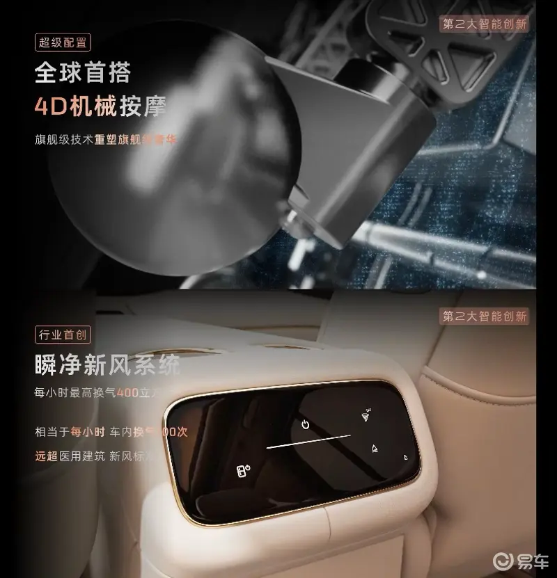智己LS9全球首搭4D机械按摩座,按摩强度为气动按摩的7倍,你如果体会过专业按摩师的手法,那么一定会对这个感觉非常熟悉。并且智己LS9搭载同级唯一全车三零重力座椅,乘坐舒适性上直接拉满。