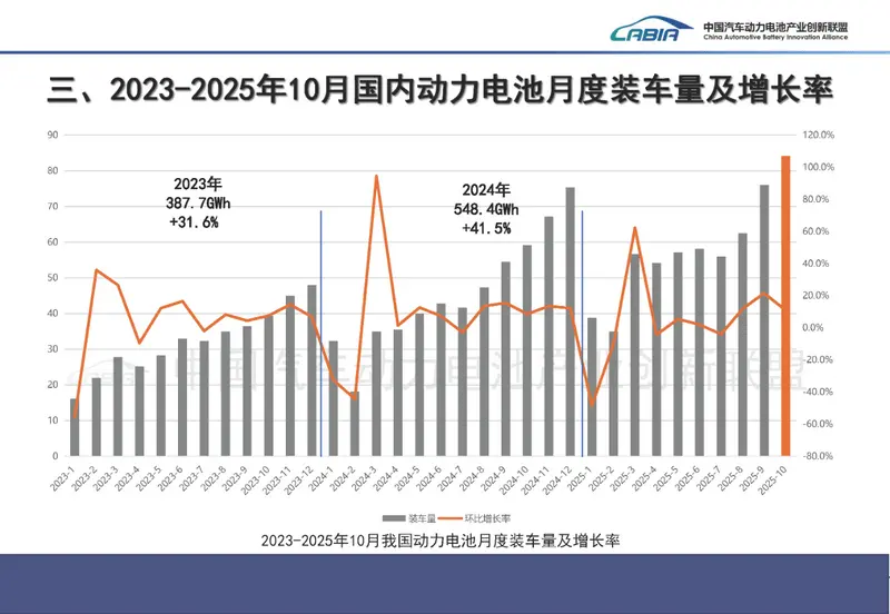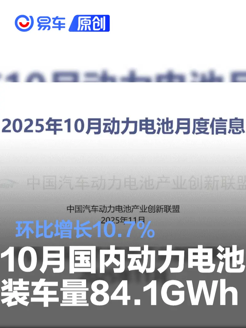 易车讯 11月12日,从中国汽车动力电池产业创新联盟获悉,2025年10月动力电池月度信息。10月,国内动力电池装车量84.1GWh,环比增长10.7%,同比增长42.1%。