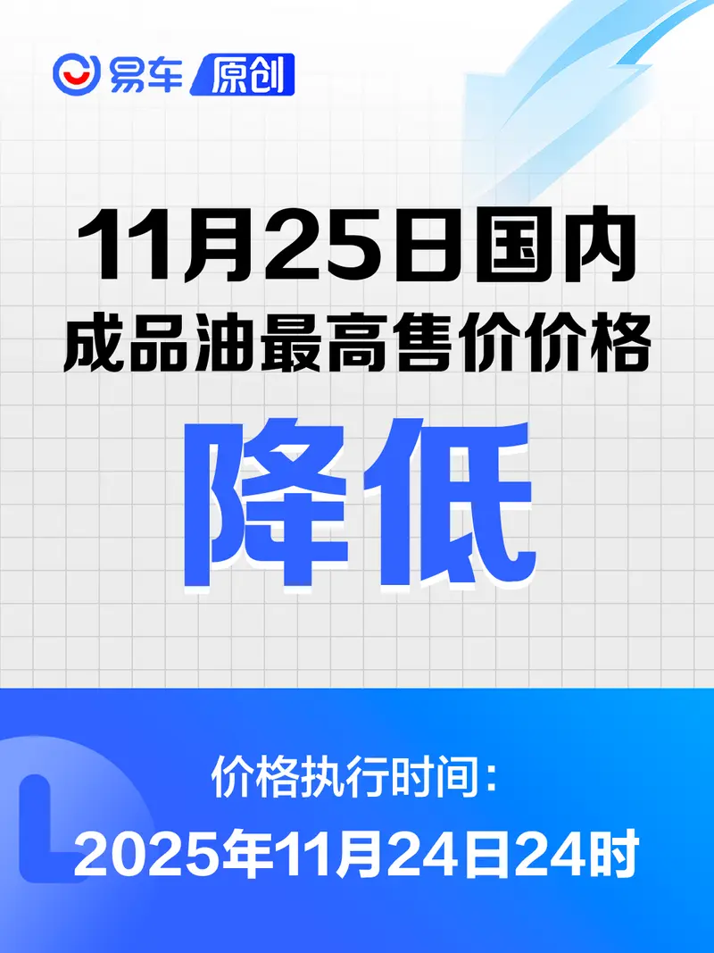 易车讯 我们从国家发展改革委了解到,受国际油价下跌影响,国内汽柴油价格将于11月24日24时起下调。据国家发展改革委价格监测中心监测,本轮成品油调价周期内(11月10日—11月21日)国际油价波动下行。本次油价调整具体情况如下:从11月24日24时起,国内汽、柴油每吨分别下调70元和65元。