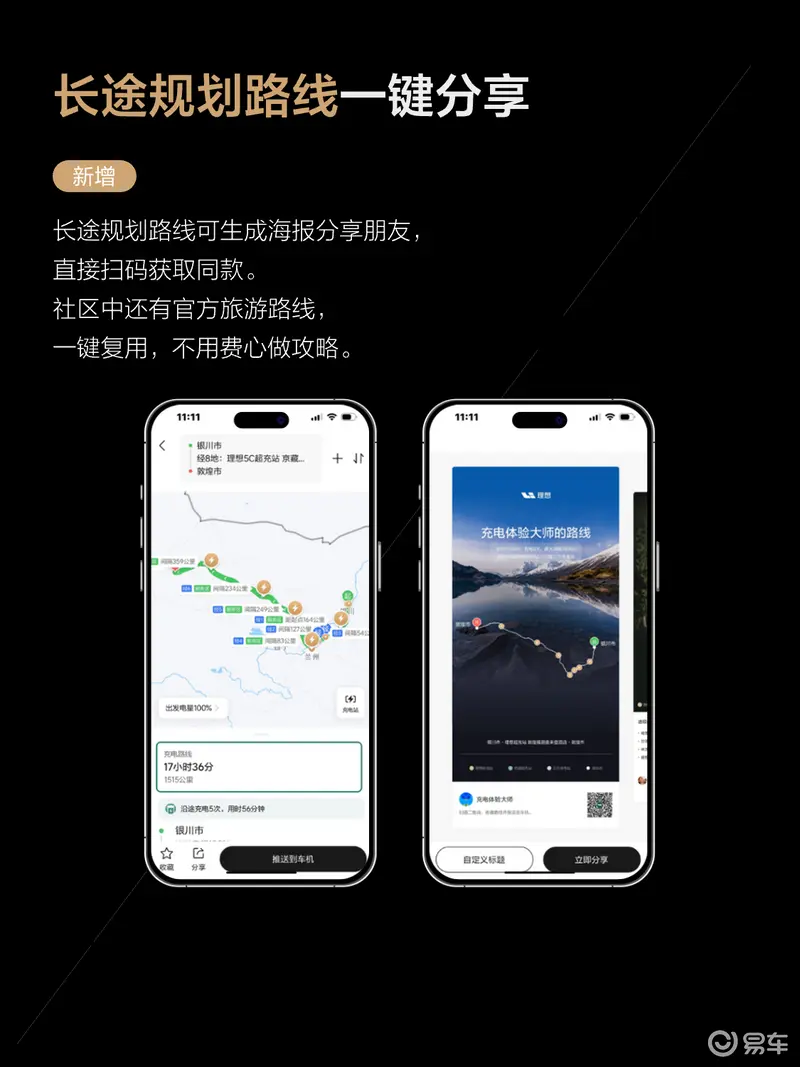 长途规划路线一键分享,长途规划路线可生成海报分享朋友,直接扫码获取同款。社区中还有官方旅游路线,一键复用,不用费心做攻略。